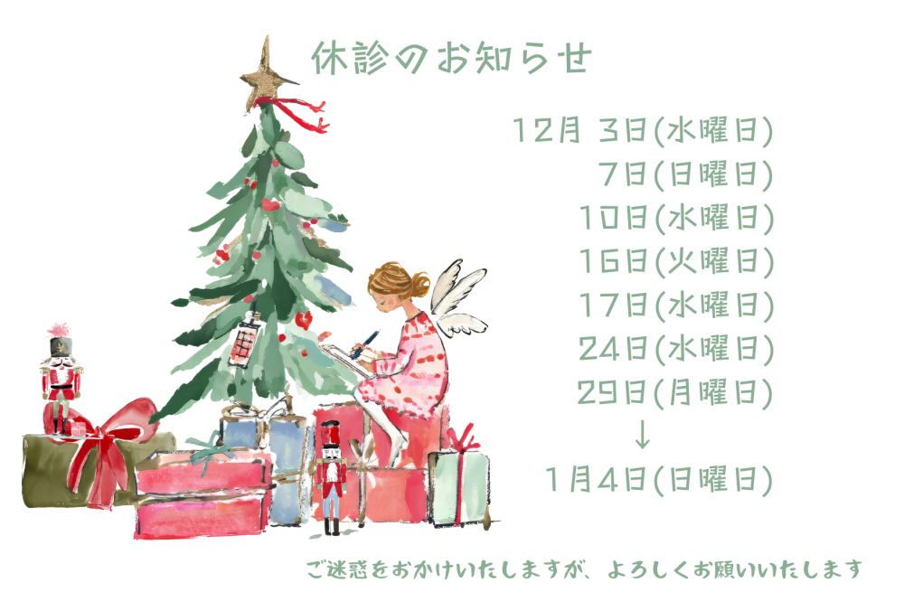 尚12月30日〜1月3日までを休診とさせて頂きます。