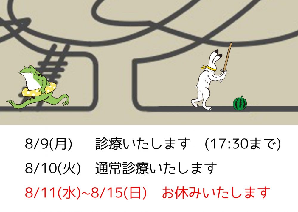 8月12日(水曜日)より8月16日(日曜日)まで夏季休診とさせていただきます。