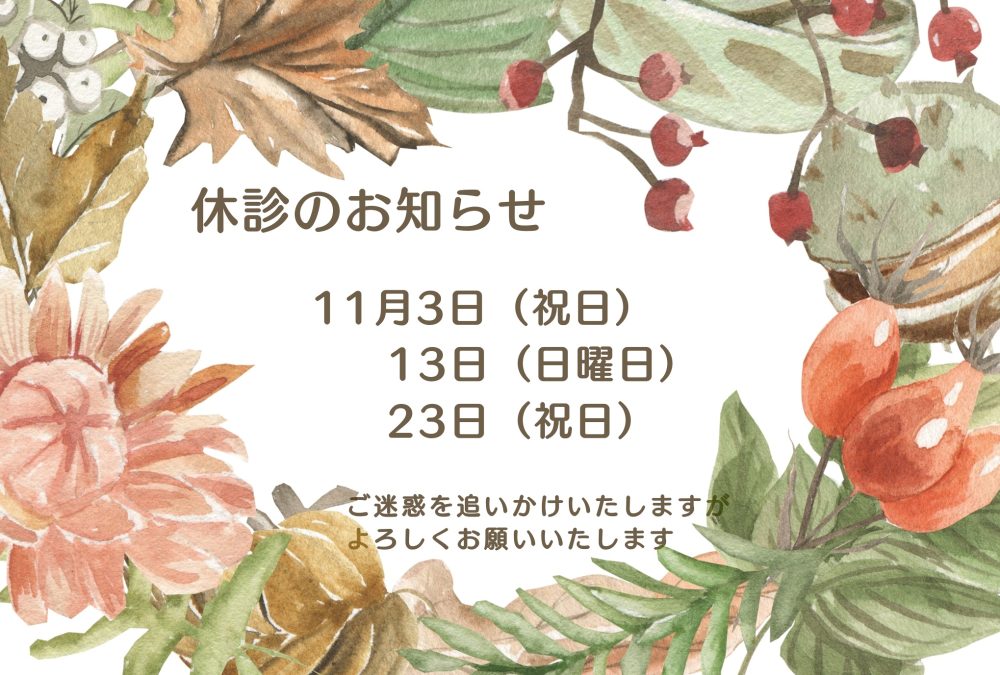 尚12月30日〜1月3日までを休診とさせて頂きます。
