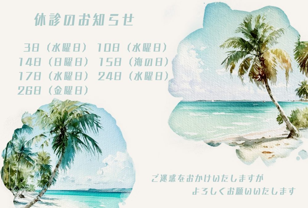 7月22日(海の日) 診療いたします。 (17時半まで)